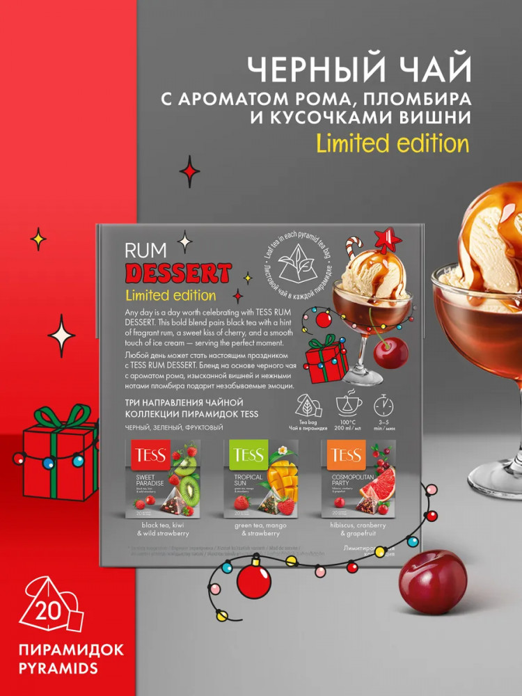 Tess Чай чёрный с ароматом рома, пломбира и кусочками вишни «Rum Dessert»