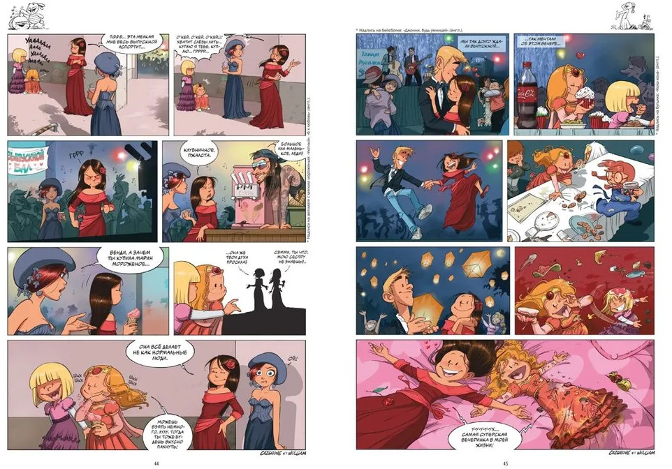 💳 Оплатить за товар можно при получении 🇰🇿 Есть бесплатная доставка по Казахстану 🎁 Копите бонусы с каждой покупки Серия: Графические романы Марин и Венди не до скуки. Впереди выпускной бал! Венди выбирает идеальный наряд, да и Марин от неё не отстаёт. По завету сестры пытается найти принца и украсить платье орхидеей, только вот не догадывается – речь шла о брошке, а не горшке с цветком. Но кто бы знал, чем закончится выпускной! Перестрелка кусочками пиццы? Серьёзно? Платье ещё долго будет благоухать пепперони и кетчупом. После состязания в меткости самое время проверить себя на скорость. Перед стартом хорошо бы украсть волшебный поцелуй у парня Венди на удачу. А после искупаться в озере, только сначала взять у сестры горячее какао и подогреть им воду. Порой кажется, жизнь без сестры была бы намного проще. Но ведь и куда скучнее. Вместе так весело исследовать этот огромный мир! |