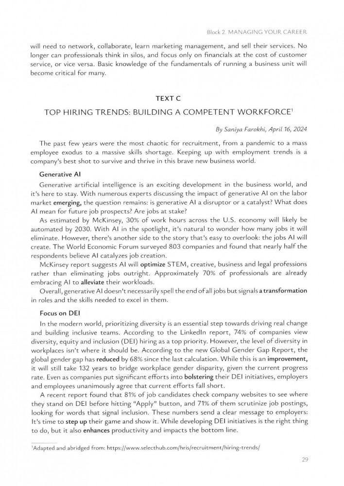 💳 Оплатить за товар можно при получении 🇰🇿 Есть бесплатная доставка по Казахстану от 1 дня 🎁 Копите бонусы с каждой покупки Учебное пособие направлено на всестороннее развитие компетенций в профессионально ориентированной англоязычной коммуникации, в том числе на совершенствование навыков всех видов речевой деятельности. Особое внимание уделяется расширению активного словарного запаса, а также изучению специализированной лексики в области менеджмента. Учебное пособие способствует развитию широкого спектра универсальных компетенций, необходимых для успешной профессиональной деятельности в современных условиях. В рамках работы с пособием студенты совершенствуют навыки критического анализа текстовой и аудиоинформации, эффективной устной коммуникации, в том числе публичных выступлений, докладов и презентаций по профессиональной тематике. Учебное пособие предназначено для студентов, изучающих деловой английский язык в области международного бизнеса и корпоративного управления на уровне С1. Адаптивная структура пособия также позволяет эффективно использовать его обучающимися с уровнем B1-В2. |
