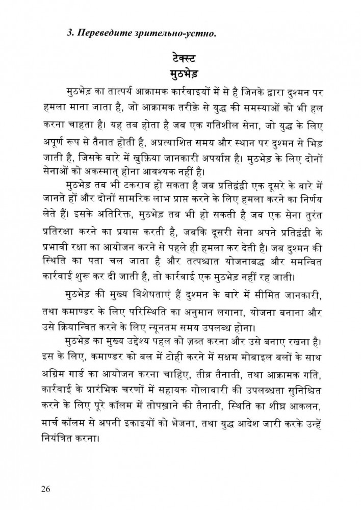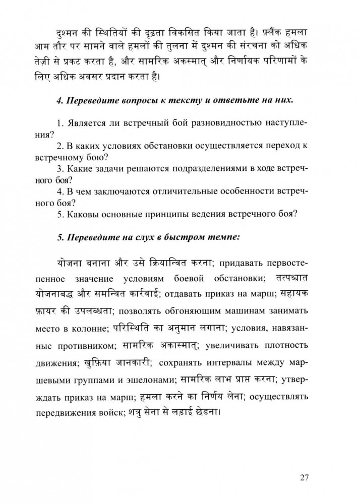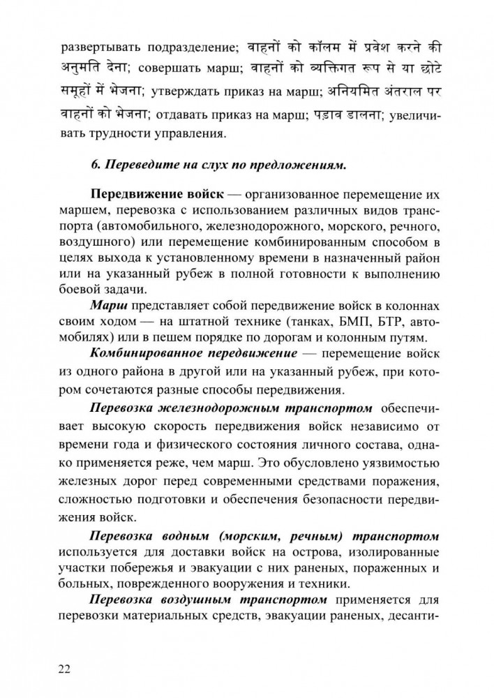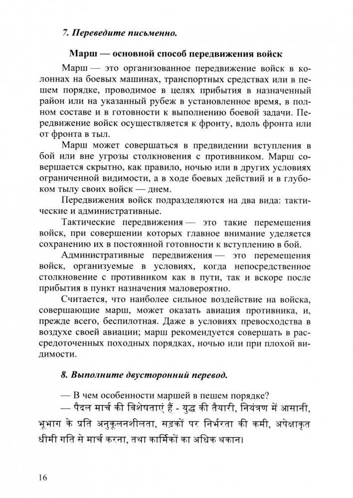 Язык хинди. Общий курс военного переводановинка В данный момент этот товар отсутствует в продаже. Возможно, у нас найдется аналогичный или похожий товар здесь. Учебное пособие является логическим продолжением первой и второй частей учебного пособия С. Толиби «Основы военного перевода языка хинди» (Москва: МГИМО-Университет, 2023, 2024), знакомит студентов с видами боевых действий, боевым и тыловым обеспечением, ОМП, ВТО, формами и методами психологических операций и способами борьбы с терроризмом и направлено на развитие у будущих офицеров-переводчиков военно-профессиональных компетенций, включая умение выполнять зрительно-устный, зрительно-письменный, абзацно-фразовый, последовательный и двусторонний переводы. Для студентов, проходящих подготовку в Военном учебном центре при МГИМО МИД России по БУС 390457 «Лингвистическое обеспечение военной деятельности» и изучающих язык хинди, а также курсантов и слушателей военных учебных заведений, проходящих подготовку по аналогичным военно-учетным специальностям. |