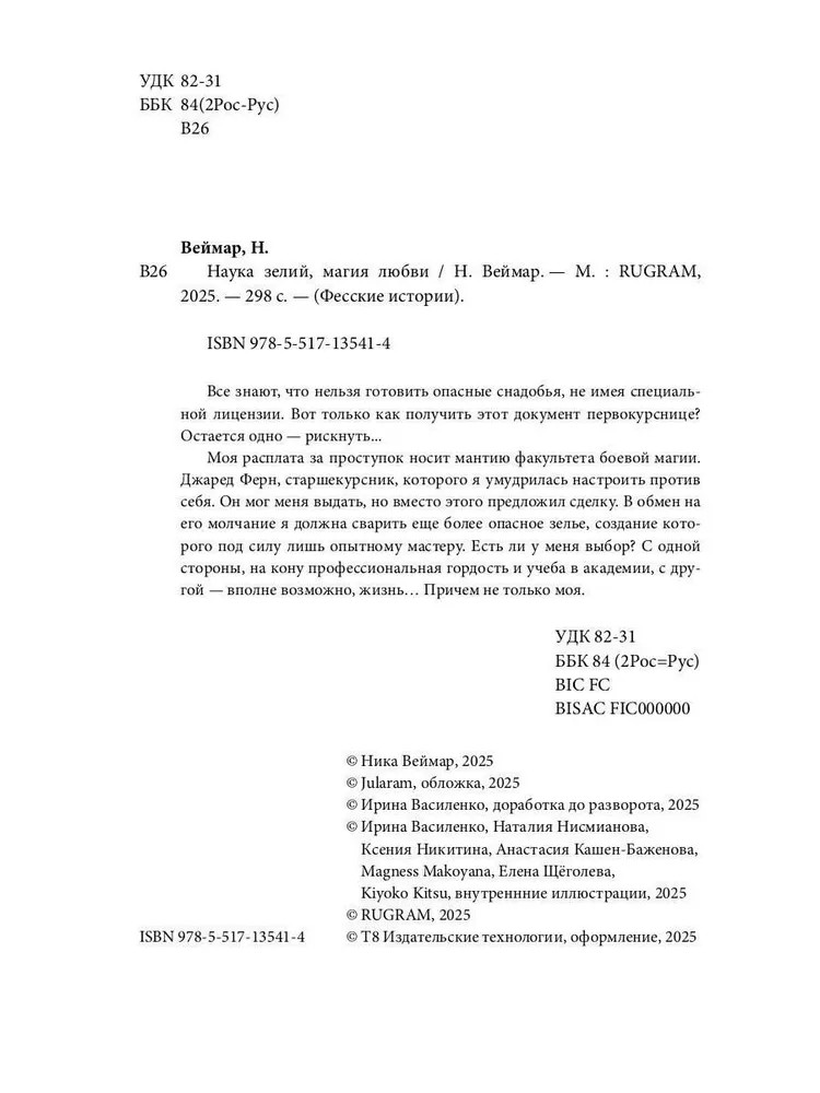 💳 Оплатить за товар можно при получении 🇰🇿 Есть бесплатная доставка по Казахстану от 1 дня 🎁 Копите бонусы с каждой покупки Серия: Фесские истории Все знают, что нельзя готовить опасные снадобья, не имея специальной лицензии. Вот только как получить этот документ первокурснице? Остается одно — рискнуть... |