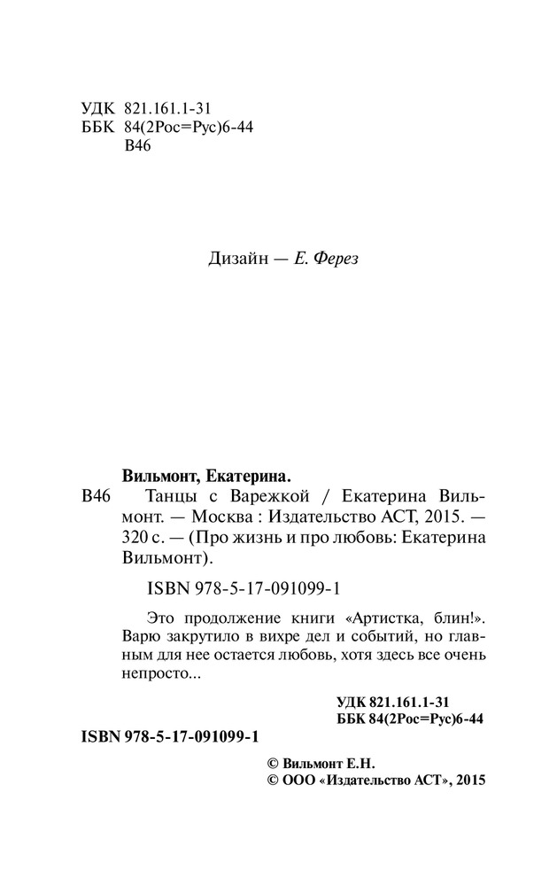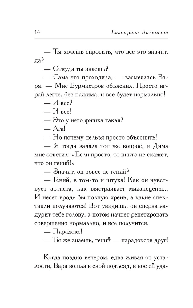 💳 Оплатить за товар можно при получении 🇰🇿 Есть бесплатная доставка по Казахстану 🎁 Копите бонусы с каждой покупки Серия: Про жизнь и про любовь. Екатерина Вильмонт Это продолжение книги «Артистка, блин!». Варю закрутило в вихре дел и событий, но главным для нее остается любовь, хотя здесь все очень непросто… |