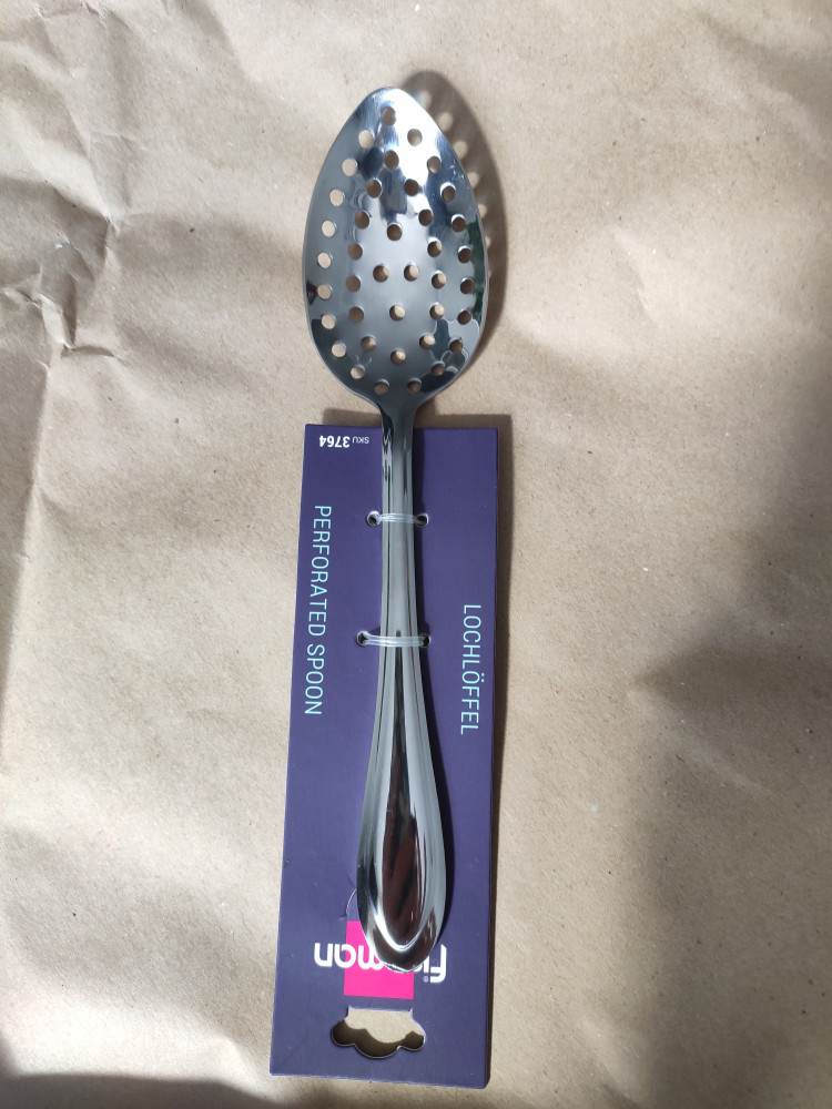 Давно искала такую ложку, потому что шумовкой не всегда удобно снимать накипь. На днях опробовала. Ложка полностью себя оправдала, дырочки не большие, не маленькие, как раз то, что нужно! Рекомендую.