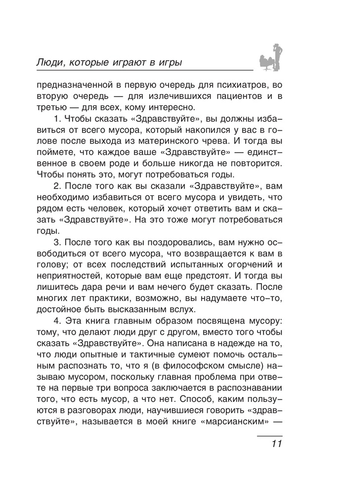 💳 Оплатить за товар можно при получении 🇰🇿 Есть бесплатная доставка по Казахстану 🎁 Копите бонусы с каждой покупки Всемирно известный психолог Эрик Берн — создатель трансакционного анализа и основанной на нем знаменитой системы психологической помощи, позволяющей людям самостоятельно решать проблемы, возникающие во взаимоотношениях с окружающими. Эта книга, успешно выдержавшая множество переизданий и выпущенная многомиллионным тиражом на многих языках, посвящена тому, чтобы научить читателя профессионально анализировать нюансы своего общения, а также помочь избавиться от многих поведенческих стереотипов и комплексов, мешающих в повседневной жизни. Первоначально данная работа задумывалась как продвинутый учебник психоанализа, однако в итоге автор сумел изложить ее простым и доступным каждому языком с использованием ярких и остроумных образов. |