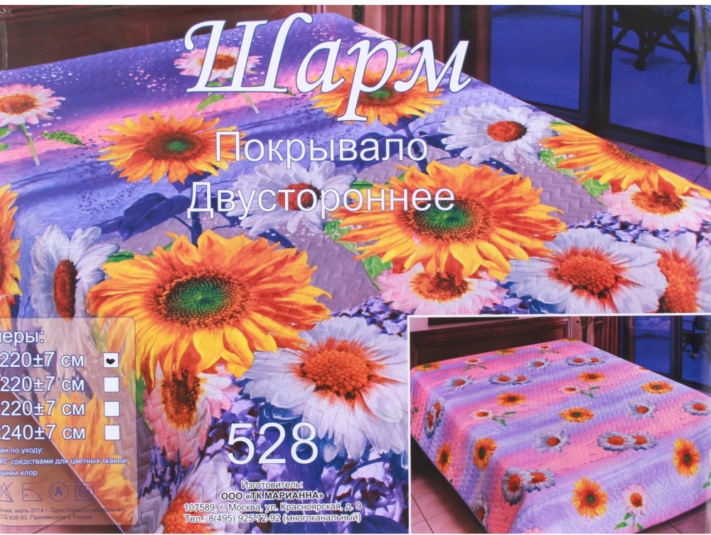 Marianna Двустороннее стеганое покрывало из искусственного шелка «Гранд-Шарм» (рис. 528, 1,5 спальное, размер 150х220)В данный момент этот товар отсутствует в продаже. Возможно, у нас найдется аналогичный или похожий товар здесь. Серия: Шарм Стеганое покрывало из искусственного шелка «Гранд-Шарм» с законченным великолепным рисунком от дизайнеров торговой марки «Марианна», очень мягкое и гладкое, с частой стежкой фигурным узором, украсит вашу спальню и придаст очарование вашей постели. |