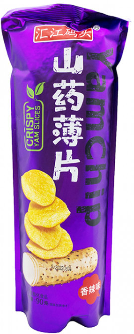 | Китайские чипсы Yam Chip отличаются своей консистенцией — хрустящие снаружи, рассыпчатые внутри. Они приготовлены не из привычного нам картофеля, а из ямса, который по вкусу нечто среднее между картофелем и бататом. Чипсы из этого овоща очень популярны в Корее и Китае. |