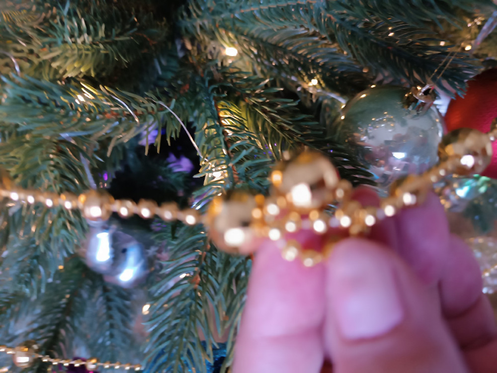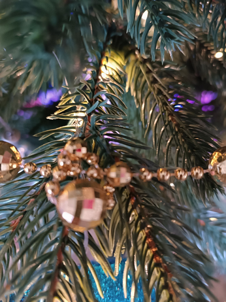 Шикарные бусики, отлично смотрятся на большой ёлке. Есть одно "но", в одном месте запутаны, как будто склеены и нет возможности распутать.