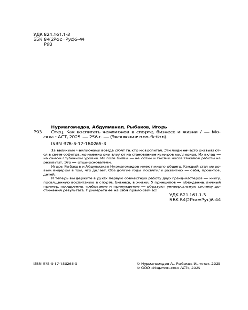 Отец. Как воспитать чемпионов в спорте, бизнесе и жизниИгорь Владимирович Рыбаков, Абдулманап Нурмагомедов -20% +73