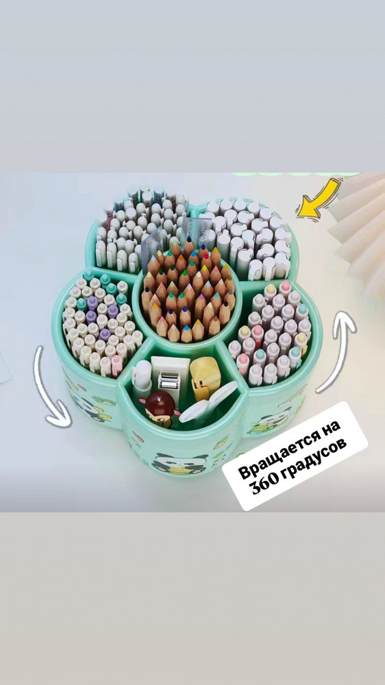 💳 Оплатить за товар можно при получении 🇰🇿 Есть бесплатная доставка по Казахстану 🎁 Копите бонусы с каждой покупки Органайзер для канцелярских принадлежностей настольный. Вращается на 360 градусов что очень удобно. Можно хранить как канцелярские принадлежности, так и использовать под хранение косметических аксессуаров. В комплект входит набор наклеек. Ребенок сам сможет украсить свой органайзер. |
