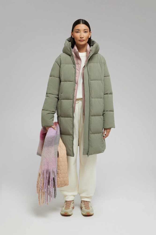 Стеганое пальто с капюшоном надежно защитит от морозов в холодное время года. Модель выполнена из технологичной ткани, которая, благодаря специальным пропиткам, защищает от мокрого снега, дождя и ветра, при этом пропускает воздух и позволяет телу дышать. Ткань устойчива к загрязнениям и отличается износостойкостью.