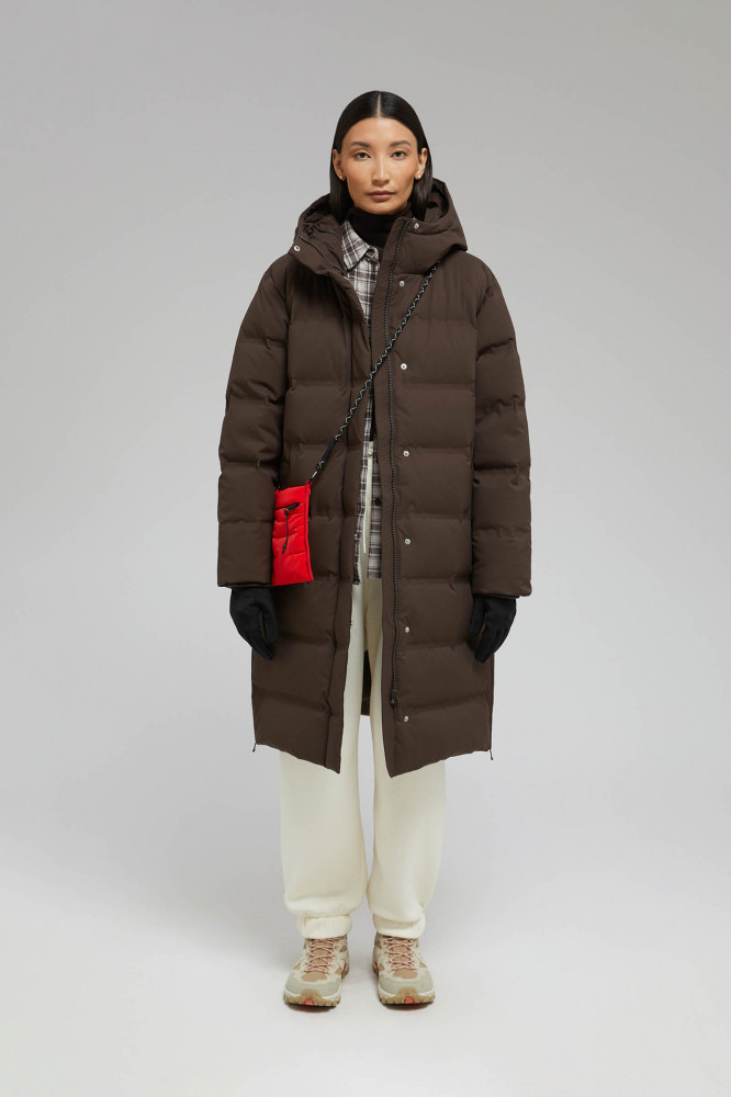 Стеганое пальто с утеплителем из натурального пуха надежно защитит от морозов в холодное время года. Модель выполнена из мембранной ткани, которая благодаря специальным пропиткам защищает от мокрого снега, дождя и ветра, при этом пропускает воздух и позволяет телу дышать. Ткань устойчива к загрязнениям и отличается износостойкостью. Натуральный утиный пух отлично согревает даже в самый сильный мороз, легок и создает внутри изделия комфортный микроклимат. Благодаря полимерному покрытию пухпакета утеплитель не мигрирует через ткань.