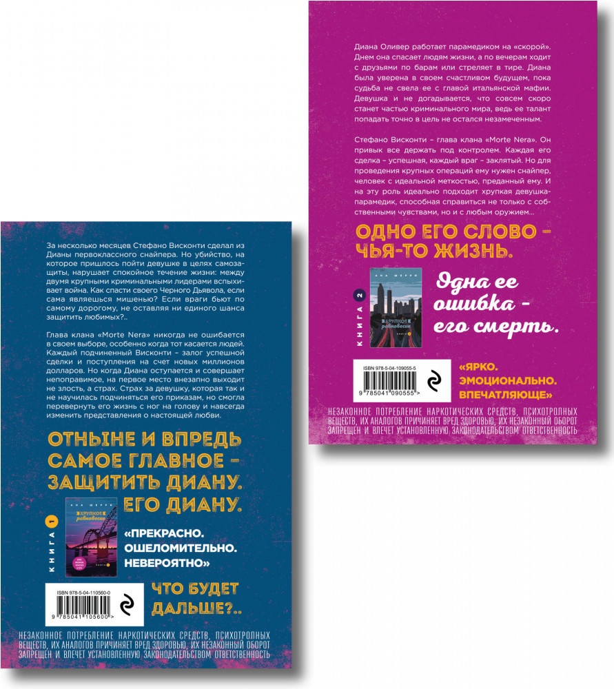 За несколько месяцев Стефано Висконти сделал из Дианы первоклассного снайпера. Но убийство, на которое пришлось пойти девушке в целях самозащиты, нарушает спокойное течение жизни: между двумя крупными криминальными лидерами вспыхивает война. Как спасти своего Черного Дьявола, если сама являешься мишенью? Если враги бьют по самому дорогому, не оставляя ни единого шанса защитить любимых?.. Глава клана «Morte Nera» никогда не ошибается в своем выборе, особенно когда тот касается людей. Каждый подчиненный Висконти — залог успешной сделки и поступления на счет новых миллионов. Но когда Диана оступается и совершает непоправимое, на первое место внезапно выходит не злость, а страх. Страх за девушку, которая так и не научилась подчиняться его приказам, но смогла перевернуть его жизнь с ног на голову и навсегда изменить представления о настоящей любви. Отныне и впредь самое главное — защитить Диану. Его Диану. |