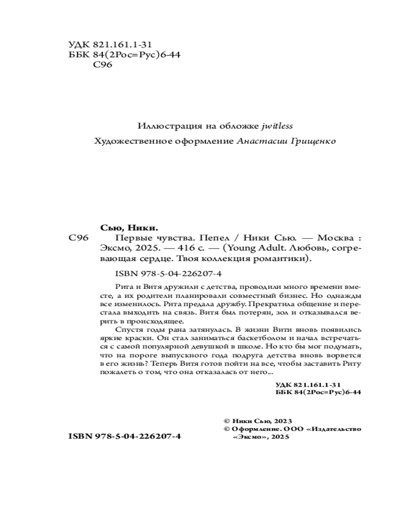 💳 Оплатить за товар можно при получении 🇰🇿 Есть бесплатная доставка по Казахстану от 1 дня 🎁 Копите бонусы с каждой покупки Серия: Young Adult. Любовь, согревающая сердце. Твоя коллекция романтики Рита и Витя дружили с детства, проводили много времени вместе, а их родители планировали совместный бизнес. Но однажды всё изменилось. Рита предала дружбу. Прекратила общение и перестала выходить на связь. Витя был потерян, зол и отказывался верить в происходящее. |