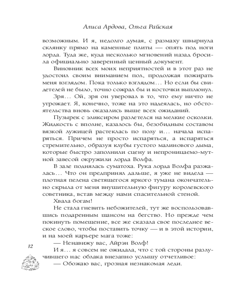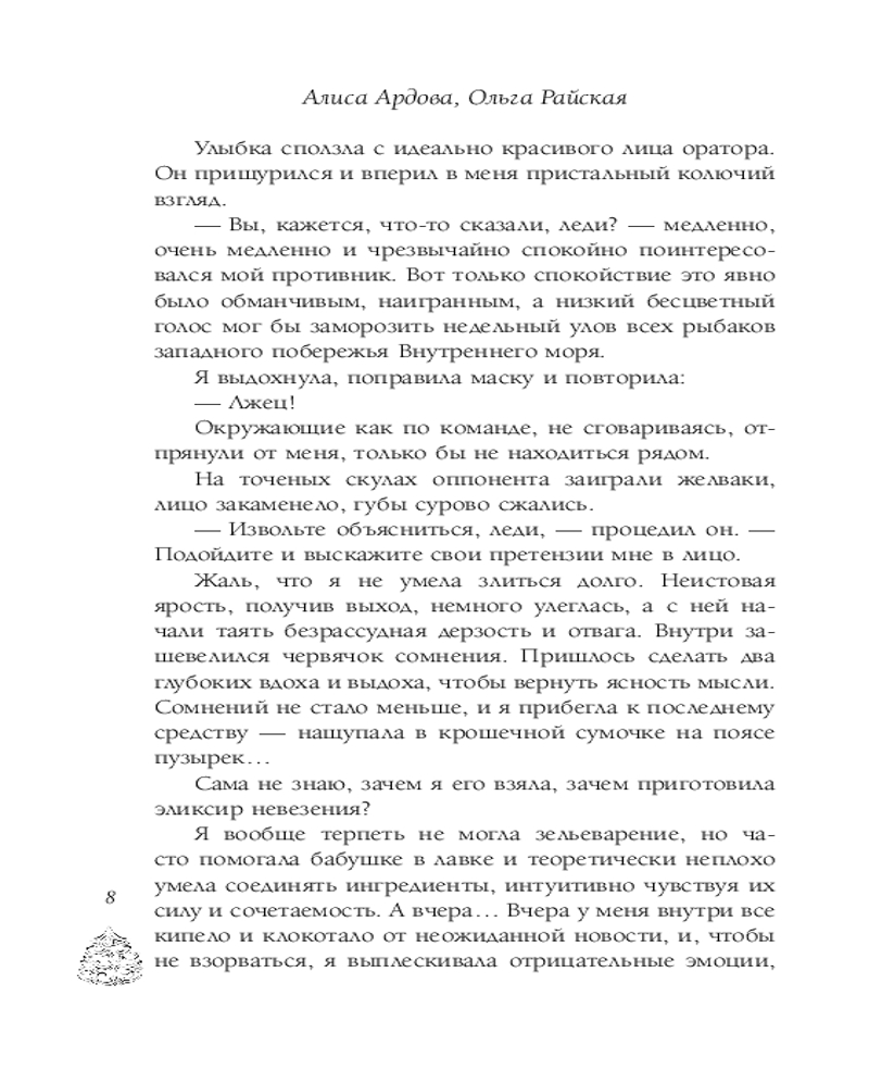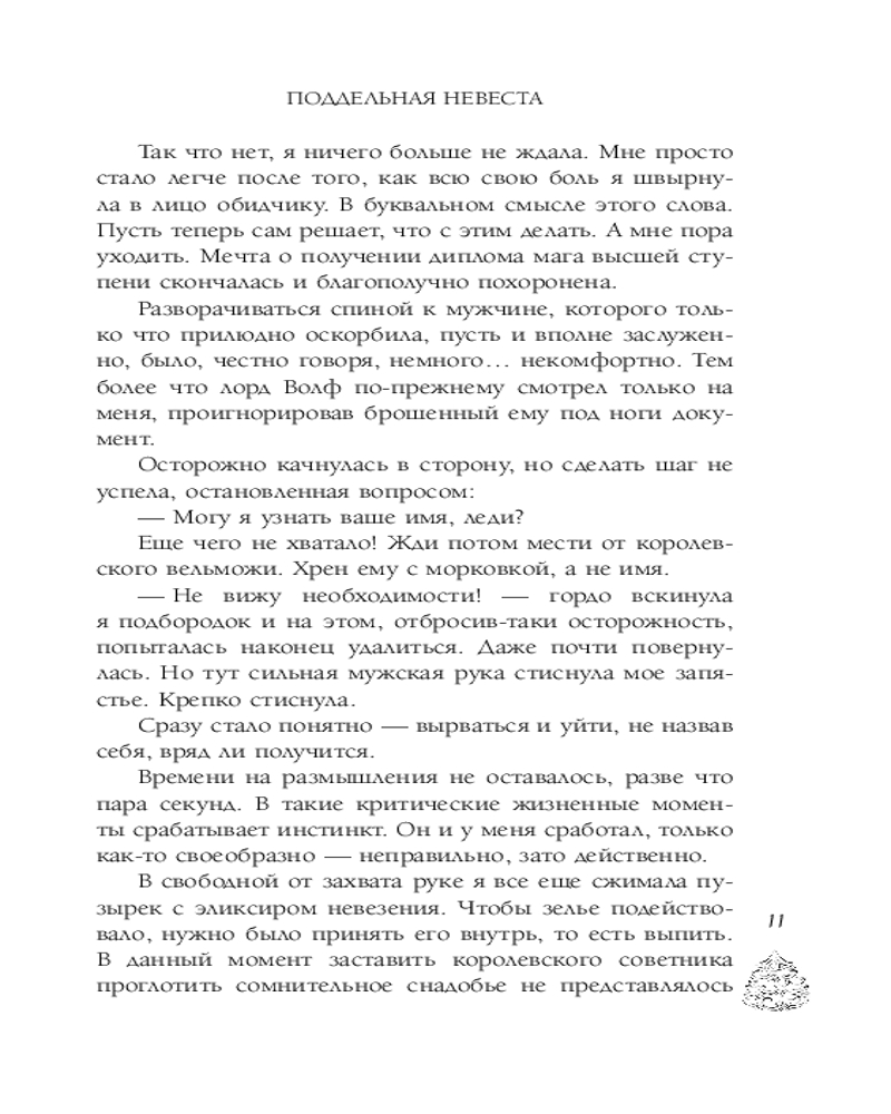 💳 Оплатить за товар можно при получении 🇰🇿 Есть бесплатная доставка по Казахстану 🎁 Копите бонусы с каждой покупки Серия: Самая волшебная ночь Герцог Айрэн Волф — глава королевского попечительского совета, один из лучших магов страны. Он умен, харизматичен, невероятно красив, а еще... абсолютно беспринципен. Настоящий негодяй и причина всех моих бед. Из-за Волфа я не поступила в столичную академию магии, о чем так прямо ему и сказала, причем публично. Еще и собственноручно сваренным зельем невезения на прощанье облила. И зелье подействовало! Правда, как-то странно, потому что герцог в ответ неожиданно предложил мне... стать его невестой. Фиктивной. Да так предложил, что я не смогла отказаться... |