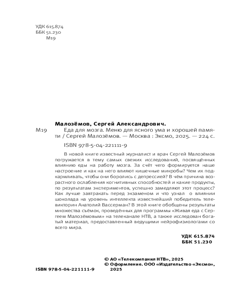 Еда для мозга. Меню для ясного ума и хорошей памятиСергей Александрович Малоземов -20% +115