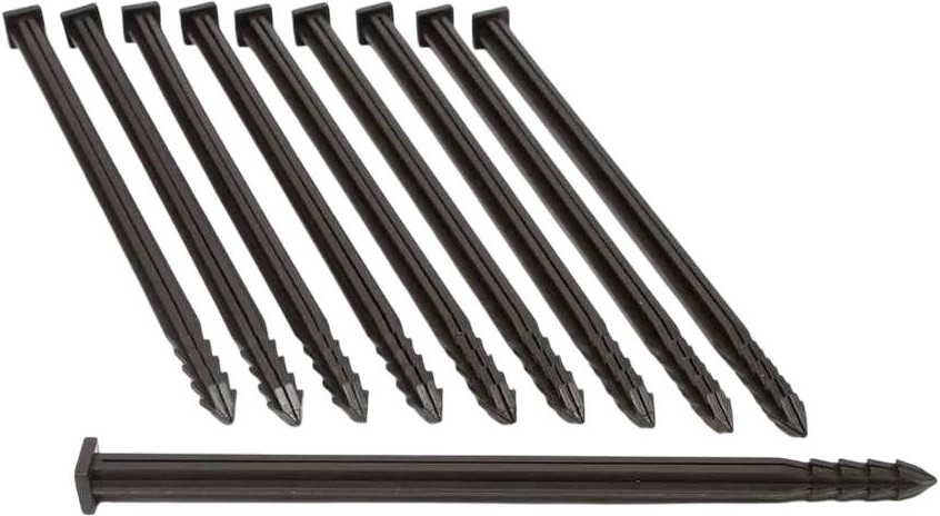 Пластиковые садовые колышки предназначены для крепления бордюрной ленты высотой до 20 см внахлест или протяжкой. Подходят также для фиксации объемной георешетки высотой от 5 до 10 см. Для установки бордюрной ленты по прямой линии достаточно 2 колышка на 1 м ленты. Для строительства клумбы криволинейной формы необходимо на 1 м ленты использовать от 4 до 6 колышек. Применяется для ограждения клумб, цветников, грядок. Такой метод применим для ленты высотой до 20 см. Также возможна установка ленты на земле без вкапывания. Колышек одевается на ленту сверху, затем углубляется в землю. Такой метод установки подходит и для ремонта уже огороженного цветника, если требуется дополнительно зафиксировать бордюрную ленту. |