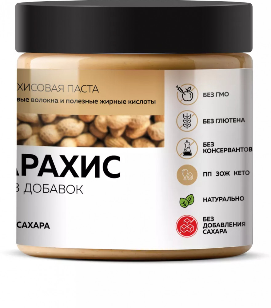 Для нашей классической арахисовой пасты без сахара мы используем фирменный помол допдропс: мелкие крупинки с равномерным распределением. Такая консистенция, согласно отзывам фокусной группы и проведенным опросам, наилучшим образом раскрывает вкус натурального запеченного арахиса и делает пасту менее вяжующей. Наш арахис без ГМО и отличается низким содержанием углеводов и повышенным содержанием минералов, качественных растительных белков и незаменимых жирных кислот. А уникально низкий гликемический индекс и высокое содержание натуральных пищевых волокон делает ореховую пасту по-настоящему диетическим продуктом, который подходит для веган и кето диеты, зож, пп. Можно в пост.