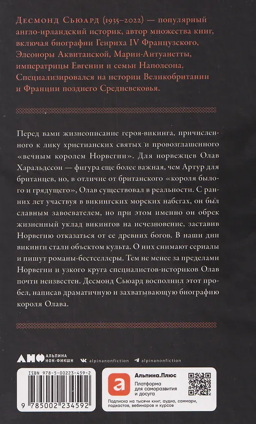 💳 Оплатить за товар можно при получении 🇰🇿 Есть бесплатная доставка по Казахстану 🎁 Копите бонусы с каждой покупки Перед вами жизнеописание героя-викинга, причисленного к лику христианских святых и провозглашенного «вечным королем Норвегии». Для норвежцев Олав Харальдссон — фигура еще более важная, чем Артур для британцев, но, в отличие от британского «короля былого и грядущего», Олав существовал в реальности. С ранних лет участвуя в викингских морских набегах, он был славным завоевателем, но при этом именно он обрек жизненный уклад викингов на исчезновение, заставив Норвегию отказаться от ее древних богов. В наши дни викинги стали объектом культа. О них снимают сериалы и пишут романы-бестселлеры. Тем не менее, за пределами Норвегии и узкого круга специалистов-историков Олав почти неизвестен. Десмонд Сьюард восполнил этот пробел, написав драматичную и захватывающую биографию короля Олава. |
