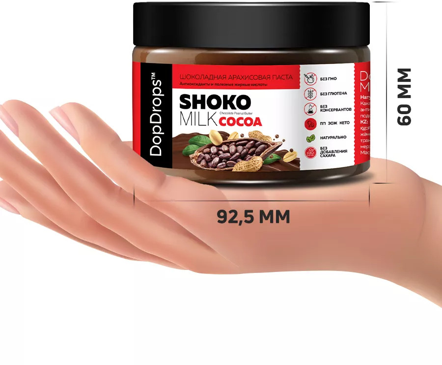 Натуральная арахисовая паста с темным шоколадом и какао без сахара Shoko Cocoa Milk Peanut Butte от DopDrops — это изысканный ореховый десерт и полезный продукт для всей семьи, который зарядит энергией на целый день. Диетическая паста — это шоколадное наслаждение, сочетающее в себе нежность арахисовой пасты и насыщенный вкус настоящего шоколада и какао.