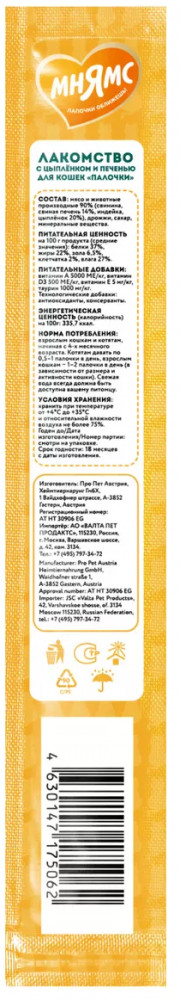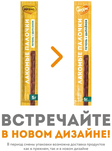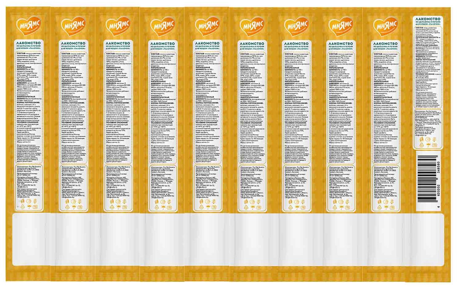 Мнямс Лакомые палочки для кошек из цыпленка и печени