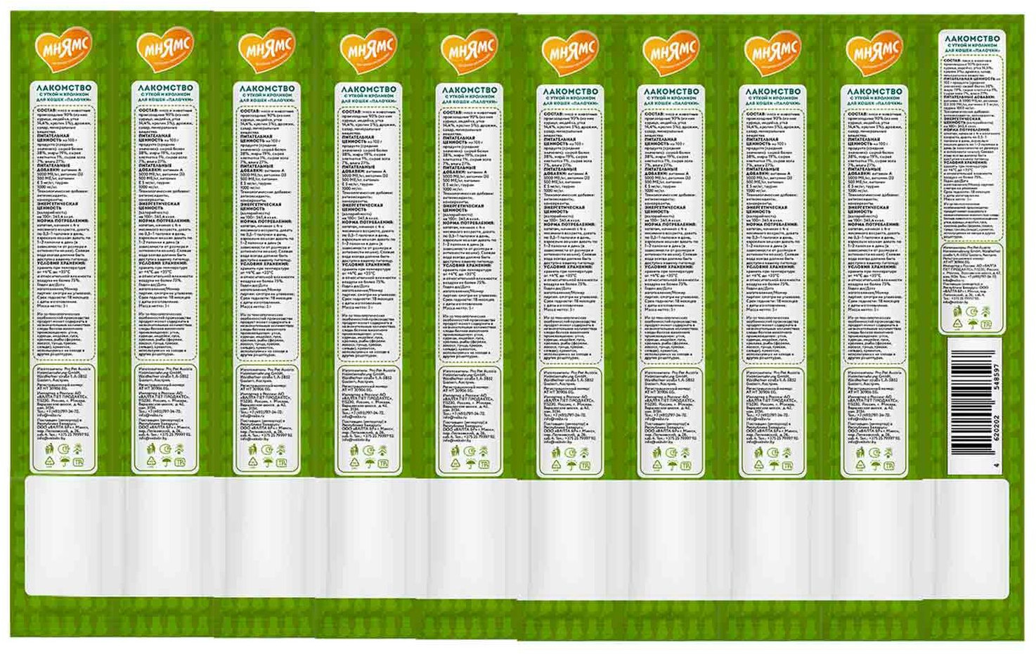 Мнямс Лакомые палочки для кошек с уткой и кроликом