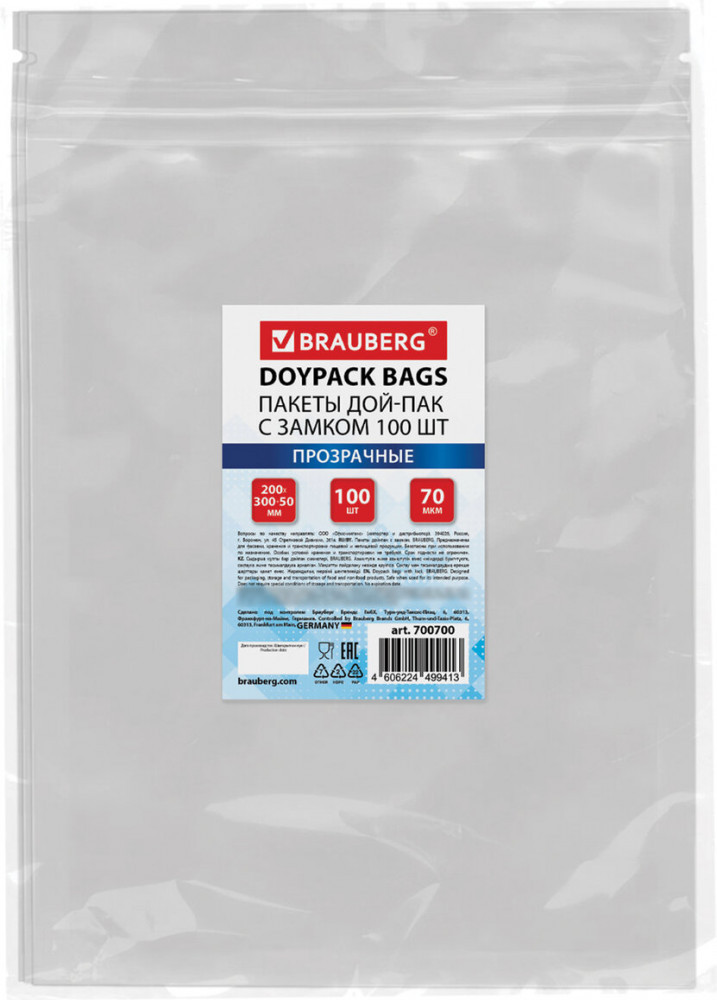 Brauberg Набор пакетов дой-пак с замком-20% +150