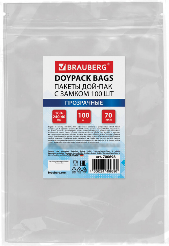💳 Оплатить за товар можно при получении 🇰🇿 Есть бесплатная доставка по Казахстану 🎁 Копите бонусы с каждой покупки Пакеты Дой-Пак BRAUBERG это современное решение для хранения и транспортировки разных продуктов. Благодаря устойчивому дну, герметичной застежке и компактному дизайну, они сочетают удобство использования, сохранение свежести и привлекательный внешний вид. Пакеты Дой-Пак BRAUBERG — современный формат упаковки, идеально подходящий для хранения и транспортировки самых разных продуктов: крупы, орехи, сладости, чай, кофе и пр. Пакеты Дой-Пак имеют эргономичный дизайн и занимают минимум места. Застежка ZIP LOCK позволяет герметично закрыть пакет и защитить содержимое от влаги, воздуха и загрязнений. Пакет полностью прозрачный, что позволяет легко определить содержимое. Оцените преимущество пакетов Дой-Пак BRAUBERG и сделайте ваш продукт удобнее, практичнее и привлекательнее. |