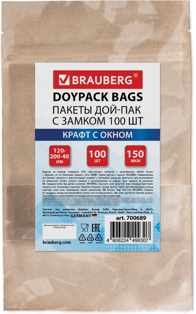 Brauberg Набор пакетов дой-пак-30% +92
