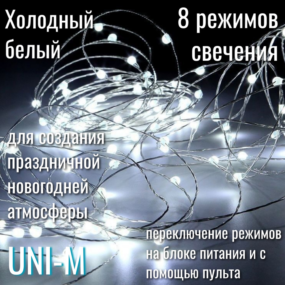 8 режимов свечения гирлянды включают комбинацию эффектов, таких как непрерывное горение, медленное затухание, плавное нарастание яркости, мерцание и бегущие огни. Эти режимы позволяют менять характер освещения, создавая разную атмосферу, от статического до динамического.