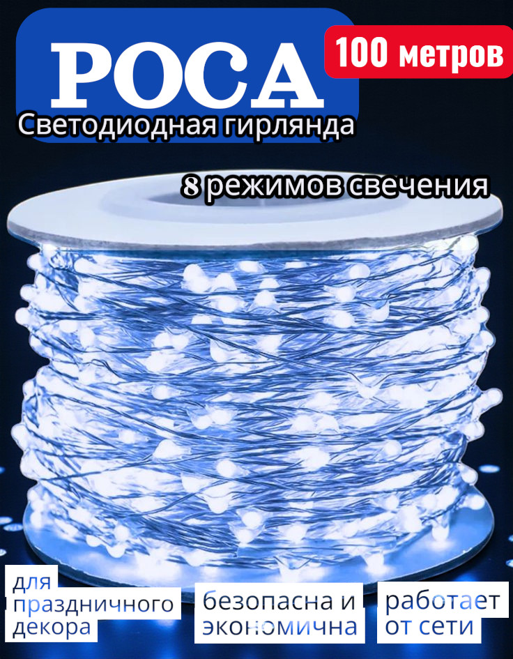 Светодиодная гирлянда «Роса» — изящный и атмосферный элемент праздничного декора, создающий ощущение уюта и волшебства. Тонкая гибкая проволока с миниатюрными светодиодами напоминает капельки росы, искрящиеся на солнце. Мягкое свечение гирлянды наполняет дом теплом, уютом и праздничным настроением, пробуждая светлые воспоминания детства и ожидание чуда.