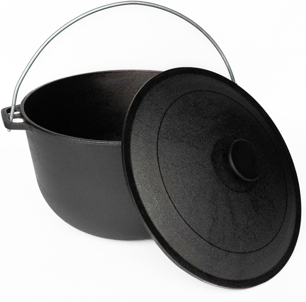 Чугунные походные казаны Гардарика имеют толстые стенки и дно, снабжены дужкой для переноски и подвешивания, двумя чугунными ручками, алюминиевой крышкой. Крышка не окисляется, имеет небольшой вес, не забирает жир при приготовлении пищи. Наша продукция выпускается фабричным способом на профессиональном оборудовании методом литья. Сам чугун является экологически чистым металлом.