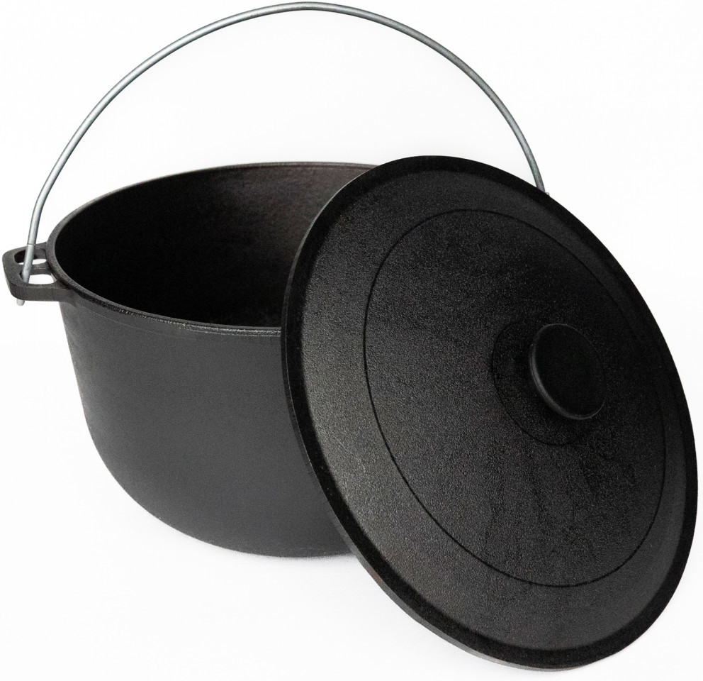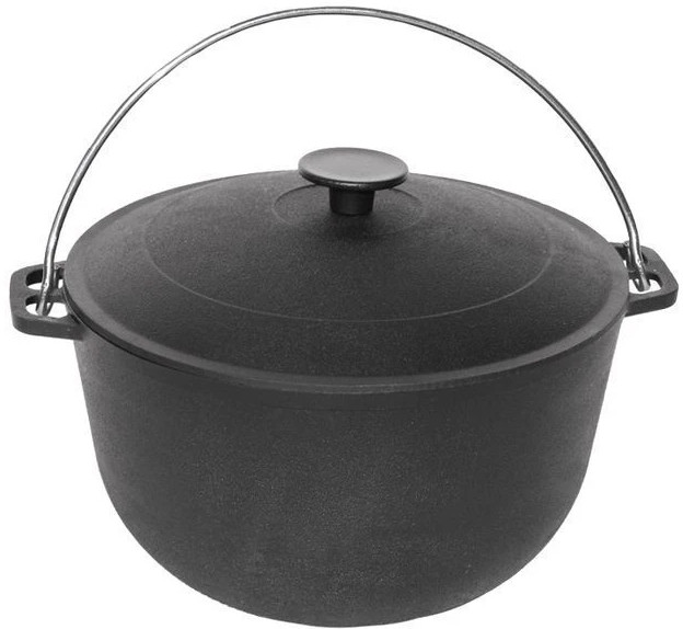 Чугунные походные казаны Гардарика имеют толстые стенки и дно, снабжены дужкой для переноски и подвешивания, двумя чугунными ручками, алюминиевой крышкой. Крышка не окисляется, имеет небольшой вес, не забирает жир при приготовлении пищи. Наша продукция выпускается фабричным способом на профессиональном оборудовании методом литья. Сам чугун является экологически чистым металлом. Туристический казан — это универсальная посуда для дома и дачи, любого похода и пикника. Благодаря плоскому дну его можно использовать помимо открытого огня и мангала на любых типах плит включая индукционные. Отлично получаются мясные блюда и овощные блюда, плов, разнообразные рагу и каши. В казане можно вскипятить воду, сварить суп и уху. Профессиональные повара говорят, что настоящий плов можно приготовить только в чугунном казане. Походный казан отлично аккумулирует тепло и равномерно распределяет его по всей поверхности.