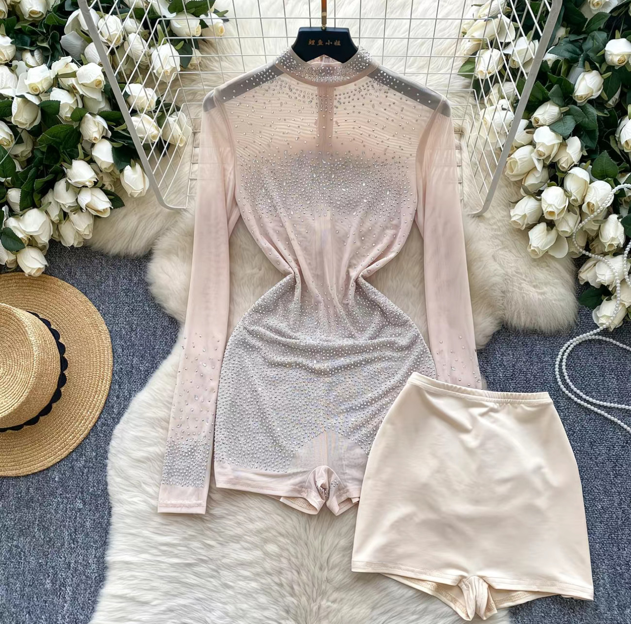 Эффектный и роскошный прозрачный комбинезон со стразами создан специально для ярких выступлений и постановок в стиле high heels, contemporary или шоу-номеров. Модель украшена блестящими стразами, которые красиво переливаются в свете софитов и подчеркивают движения тела.