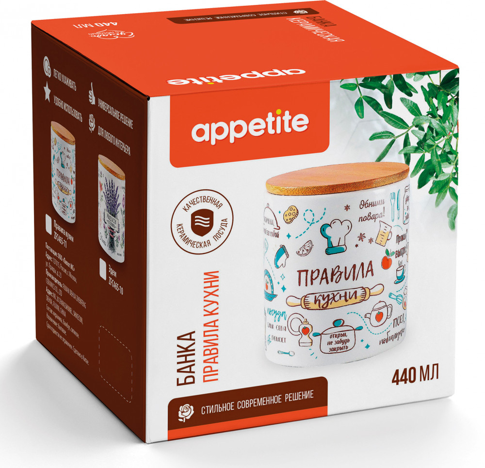 Appetite Банка для хранения с крышкой «Правила кухни»
