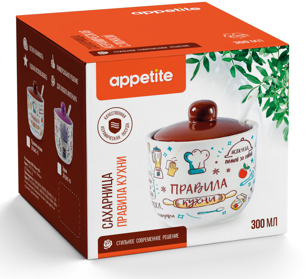 Appetite Сахарница с ложкой «Правила кухни»-25% +52