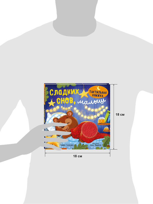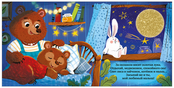 В данный момент этот товар отсутствует в продаже. Возможно, у нас найдется аналогичный или похожий товар здесь. Книжка-игрушка, книжка-картинка, тактильная книга для малышей, которую можно погладить, — «Сладких снов, малыш» — идеально подходит для чтения на ночь. На страницах этой книжки для малышей от года есть тактильные вставки из разных материалов. Слушая сказку, маленький читатель будет гладить пушистый плед, которым мама укрыла медвежонка, чесать мягкий животик зайца и даже дотронется до луны! За окошком висит золотая луна. Отдыхай, медвежонок, спокойного сна!