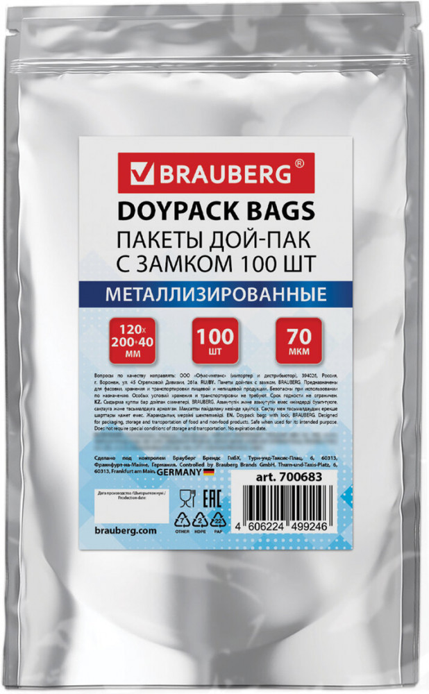 Оцените преимущество пакетов Дой-Пак Brauberg и сделайте ваш продукт удобнее, практичнее и привлекательнее.
