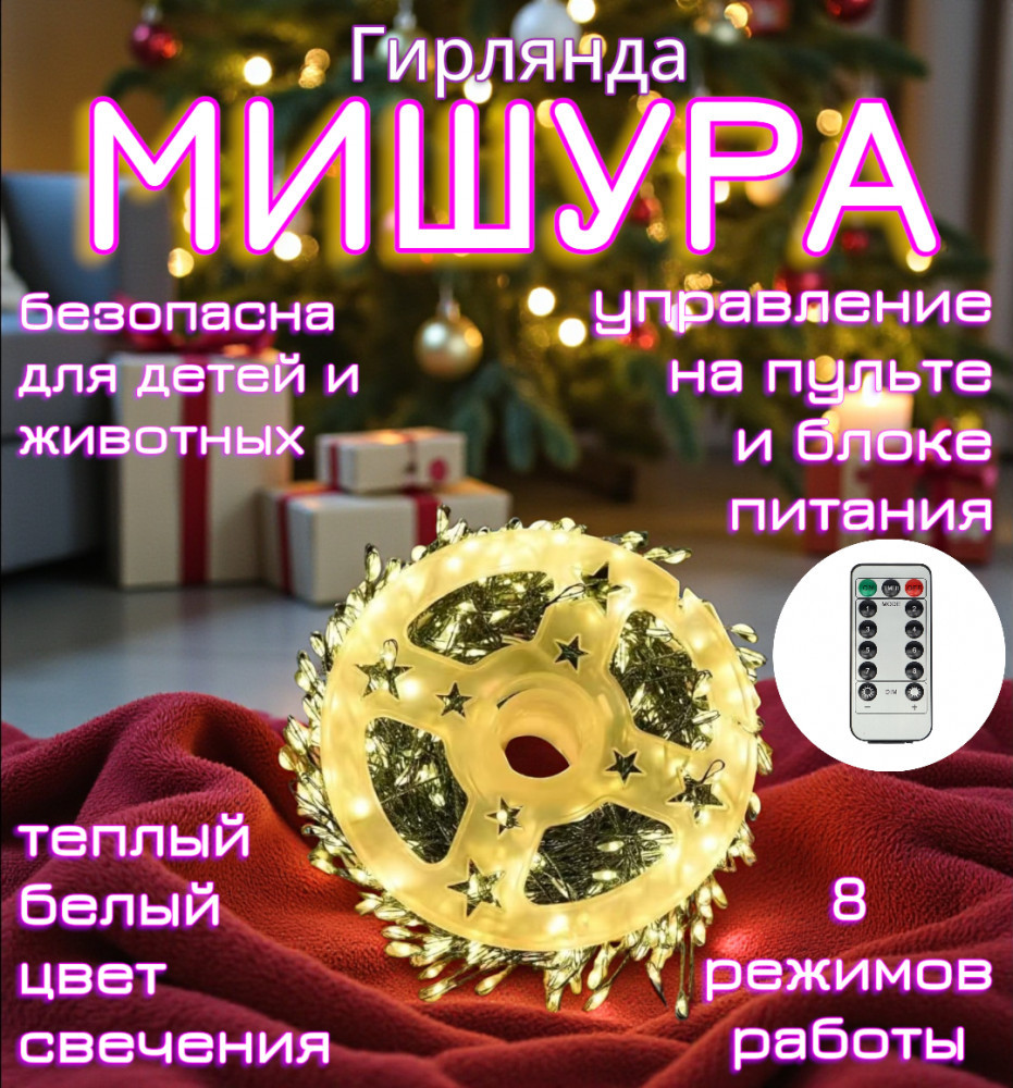 Светодиодная гирлянда-роса «Мишура» на зеленом проводе — изящный и атмосферный элемент праздничного декора, создающий ощущение уюта и волшебства. Тонкая гибкая проволока с миниатюрными светодиодами напоминает капельки росы, искрящиеся на солнце. Мягкое свечение гирлянды наполняет дом теплом, уютом и праздничным настроением, пробуждая светлые воспоминания детства и ожидание чуда.