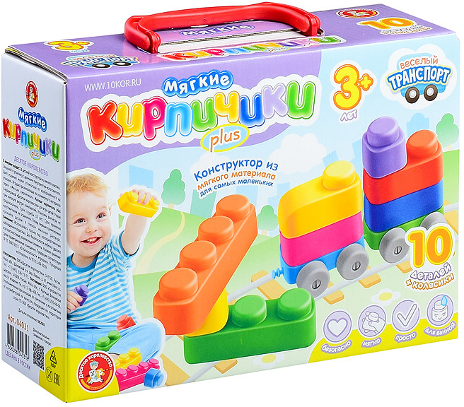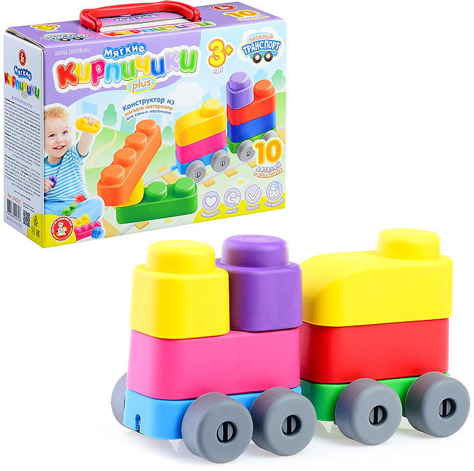 Десятое королевство Конструктор «Мягкие кирпичики plus. Веселый транспорт»В данный момент этот товар отсутствует в продаже. Возможно, у нас найдется аналогичный или похожий товар здесь. Этот красочный и мягкий конструктор предназначен специально для самых маленьких детей возрастом от 3 месяцев. Эта игрушка обязательно понравится малышу, позволит ему осваивать хватательный навык на мягких приятных деталях и строить незамысловатые конструкции. Конструктор развивает мелкую моторику, координацию, хватательные движения, фантазию и усидчивость, учит соединять и разъединять предметы, а также различать цвета. Все детали конструктора мягкие, без острых углов, бархатистые на ощупь и приятные для детских ручек. Они хорошо крепятся между собой, крутятся, их удобно использовать также для игры в ванной или в песочнице. Цвета кирпичиков яркие, насыщенные. |