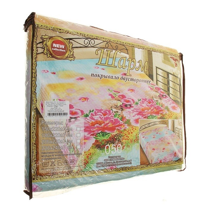Верх покрывала выполнен из искусственного шелка с декоративной строчкой ультрастеп по всему покрывалу, низ покрывала - полликотон, подкладка холофайбер. Обратная сторона покрывала изготовлена из хлопка.