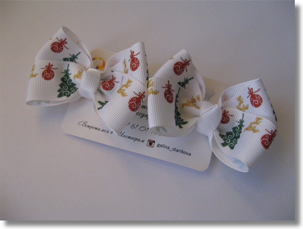 Обратите внимание: ручная работа — в связи с этим возможно незначительное изменение размещения рисунка на бантике.
