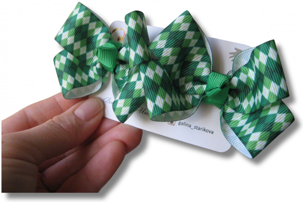 Обратите внимание: ручная работа — в связи с этим возможно незначительное изменение размещения рисунка на бантике.
