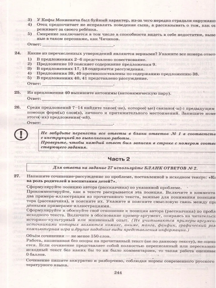 💳 Оплатить за товар можно при получении 🇰🇿 Есть бесплатная доставка по Казахстану от 1 дня 🎁 Копите бонусы с каждой покупки Серия: ЕГЭ Одобрено ФИПИ Пособие прошло научно-методическую оценку ФГБНУ «ФИПИ». Пособие содержит 37 типовых вариантов экзаменационных заданий Единого государственного экзамена по русскому языку. Назначение пособия — предоставить возможность обучающимся отработать навыки выполнения заданий, аналогичных заданиям, представленным в демонстрационной версии ЕГЭ по русскому языку. Пособие адресовано учителям для подготовки учащихся к Единому государственному экзамену, а учащимся-старшеклассникам — для самоподготовки и самоконтроля. Приказом № 699 Министерства образования и науки Российской Федерации учебные пособия издательства «Экзамен» допущены к использованию в общеобразовательных организациях. |