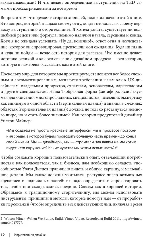 Сторителлинг в дизайне. Как создавать яркие историиВ данный момент этот товар отсутствует в продаже. Возможно, у нас найдется аналогичный или похожий товар здесь. Серия: O’Reilly. Книги по программированию Это практическое руководство по использованию сторителлинга в дизайне цифровых продуктов. Дизайнер и специалист по пользовательскому опыту Анна Дальстрём показывает, как приемы кино и литературы помогают создавать проекты, которые цепляют внимание, удерживают интерес и побуждают к действию. Книга предназначена для дизайнеров, программистов, менеджеров проектов и всех, кто участвует в создании цифровых продуктов. Сторителлинг — это не только про тексты. Это способ выстраивать эффективное взаимодействие с пользователем. |