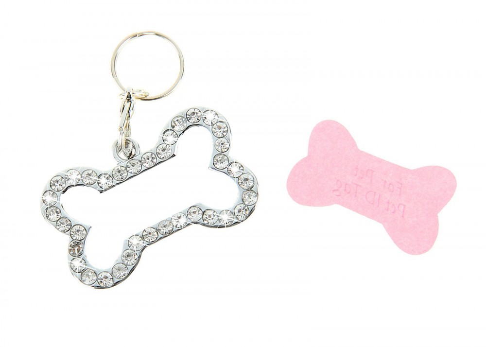 Пижон Адресник с бумажным вкладышем "Косточка", стразы, подвес-кольцо 3,2 х 2,0 х 0,3 см-25% +35 удобный для маленьких красивые стразы прочность