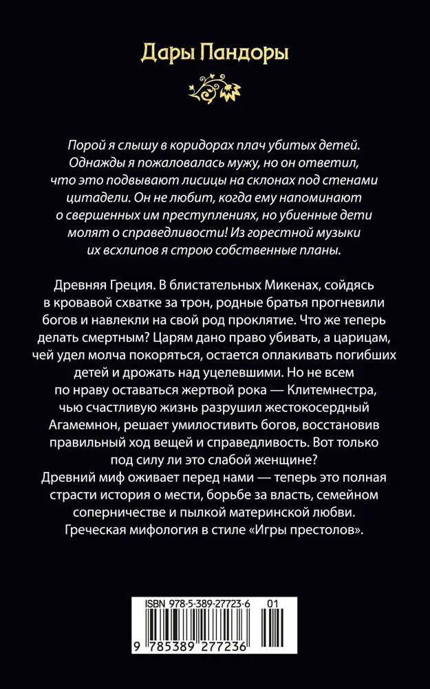 Завораживающий, полный неистовых страстей дебютный роман-ретеллинг, повествующий от первого лица о кровавой судьбе, растоптанной любви и справедливом возмездии царицы Микен Клитемнестры.