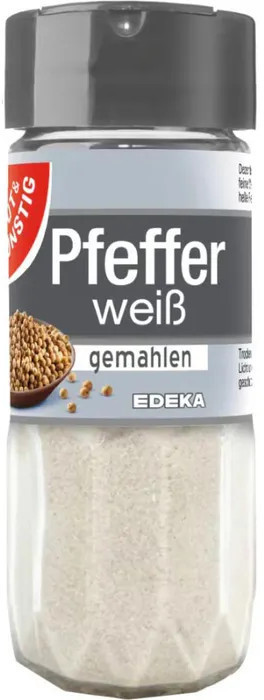 Изысканная специя от Edeka (Германия), которая придаёт блюдам тонкую пряную остроту и мягкий, более деликатный вкус по сравнению с чёрным перцем. Он особенно хорошо подходит там, где важен светлый цвет блюда и аккуратная подача: в соусах, супах-пюре, блюдах из рыбы, птицы и овощей.
