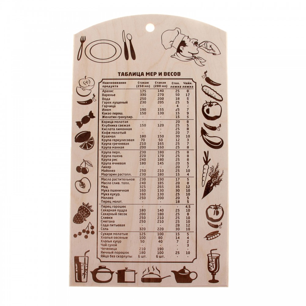 Доска разделочная «Таблица мер и весов»В данный момент этот товар отсутствует в продаже. Возможно, у нас найдется аналогичный или похожий товар здесь. Разделочные доски занимают среди кухонной утвари почетное место. Именно от их качества зависит то, как долго Вам прослужит нож, не утрачивая своей остроты. Она изготовлена из природного материала — березы с нанесением цветной печати, которая не выгорает на солнце и не боится влаги. Фанерное изделие не трескается и не теряет форму, а также является самой неблагоприятной средой для микробов. Кухонный атрибут станет прекрасным дополнением интерьера, внесет изюминку и добавит уюта. |