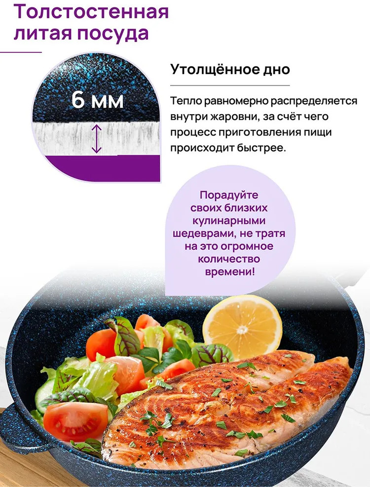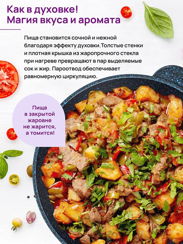 • можно использовать в духовом шкафу без крышки при температуре до 250 градусов.