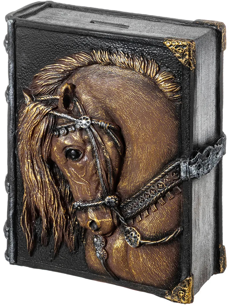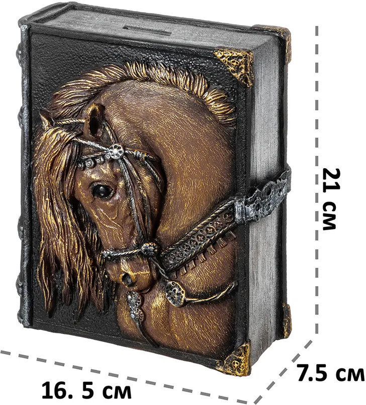 Копилка «Лошадь» от Elan Gallery поможет вам организовать хранение ваших финансов. Размер изделия — 16.5×7.5×21 см. Фигурка имеет необычную форму чёрной книжки. На одной стороне обложки красуется рельефный силуэт бронзового коня в изысканной сбруе. На другой — бронзовая подкова. Выполнена из гипса. Это классическая копилка, которую нужно разбить, чтобы достать сбережения. Лошадь — символ 2026 года! Её образ отражает энергию, свободу и неукротимый дух, вдохновляя на преодоление любых преград. Мы создали коллекцию новогодних и рождественских товаров для сервировки и декора, которые наполнят пространство атмосферой уюта. Изделия помогут оформить интерьер праздничными композициями и добавят нотку зимнего волшебства. |